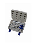JUEGO VASOS HEX 1/4“ 35 piezas. 4, 4.5, 5, 5.5, 6, 7, 8, 9, 10, 11, 12, 13 mm. Carraca tipo pera 1/4”. Mango corredizo en T 1/4”. Mango cuadrado macho. Alargaderas. Vaso porta puntas 1/4”. Llaves hexagonales niqueladas 1.5,2,2.5 mm. Puntas 1/4”: PH1,
