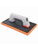 Talocha rectangular profesional con base de esponja de celdas grandes, máxima absorción. Perfecto enmangado, mango de plástico muy ligero y ergonómico. Especial para trabajos de talochado de superficies de cemento, mortero y otros materiales.
