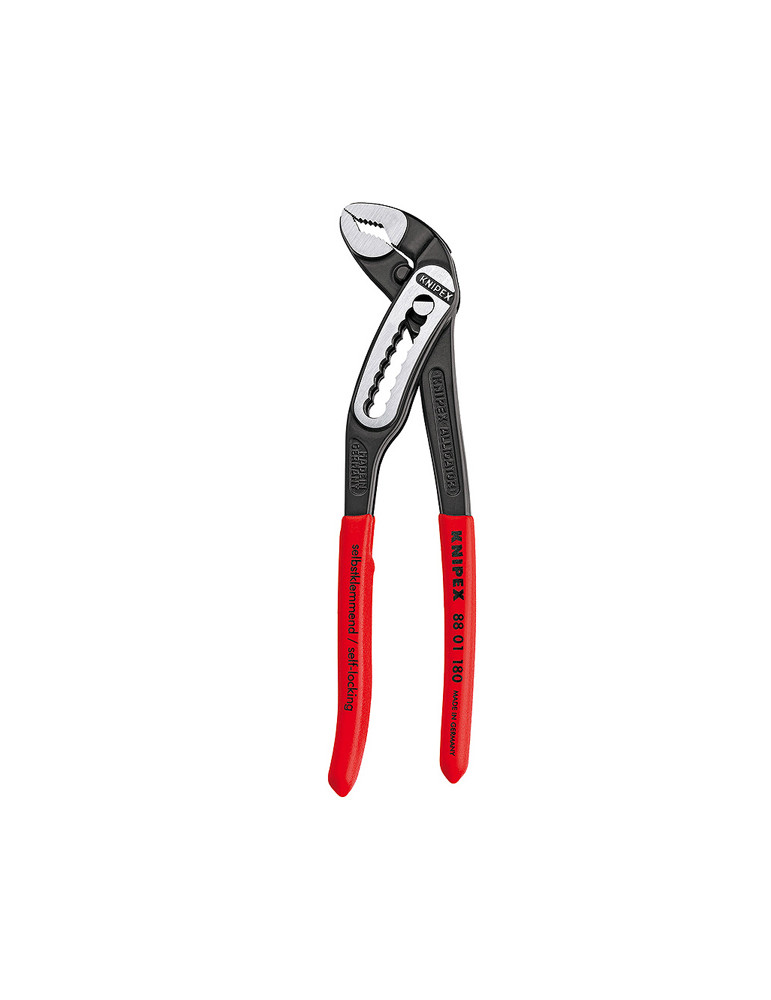 TENACILLA PARA BOMBAS DE AGUA ALLIGATOR KNIPEX Mordazas con efecto autoretención y dientes con dureza de 61 HRC. Múltiples posiciones de ajuste y gran capacidad de trabajo.
