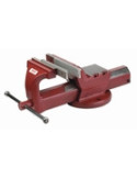 Fabricado en acero forjado, guía cuadrada ajustable, mordazas intercambiables de acero templado, base de yunque, incluye mordazas de aluminio imantadas. 100 mm.