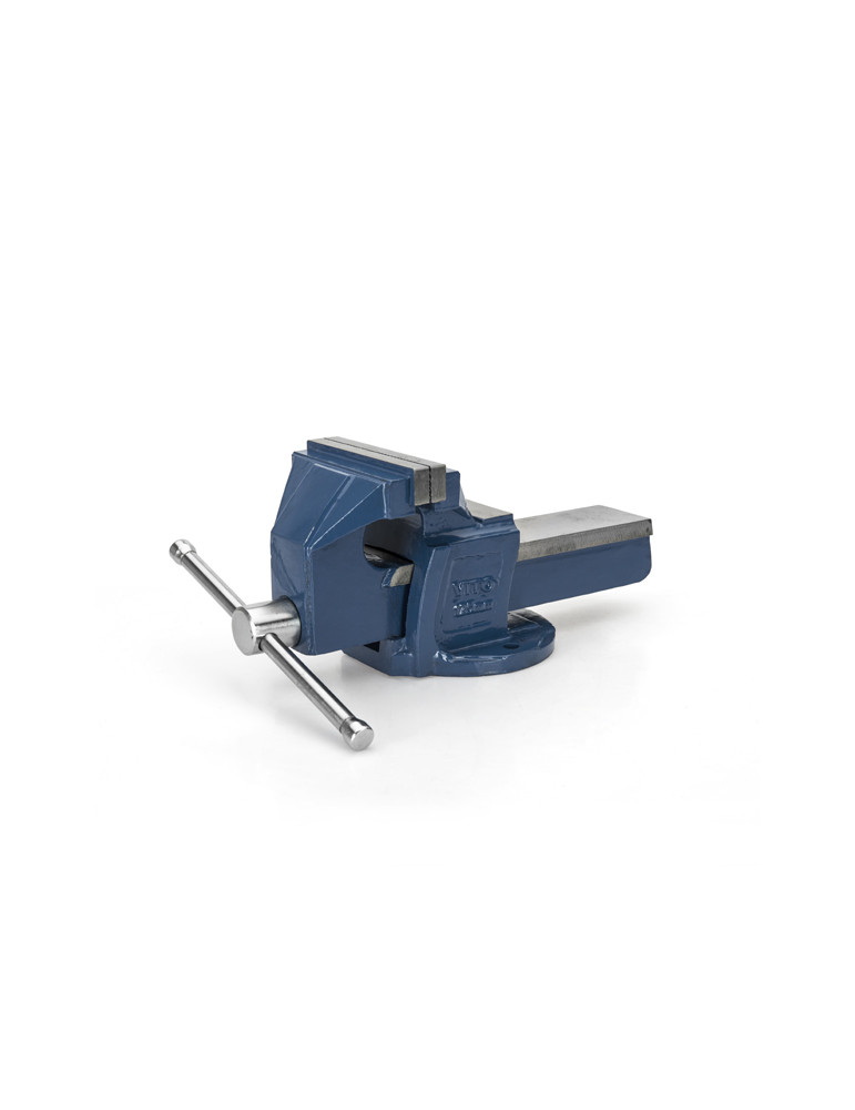 Tornillo de banco con cuerpo en hierro fundido, tiene la mordaza en acero templado. 100 mm.