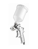 Pistola de gravedad. Mínimo consumo de aire. Permite trabajar con compresores min. 1,5 HP. Robusta y Ergonómica. Reguladores de Abanico y producto.