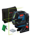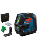NIVEL LÁSER DE LÍNEAS GLL 2-15 G + LB 10 BOSCH Autonivelante. Proyección verde cruzada con amplia proyección vertical. Precisión proyección: +/-0,3mm/m. Alcance proyección: 15m. IP 54. Bloqueo de péndulo. Compatible con 4 pilas alcalinas 1,5V LR6/AA.