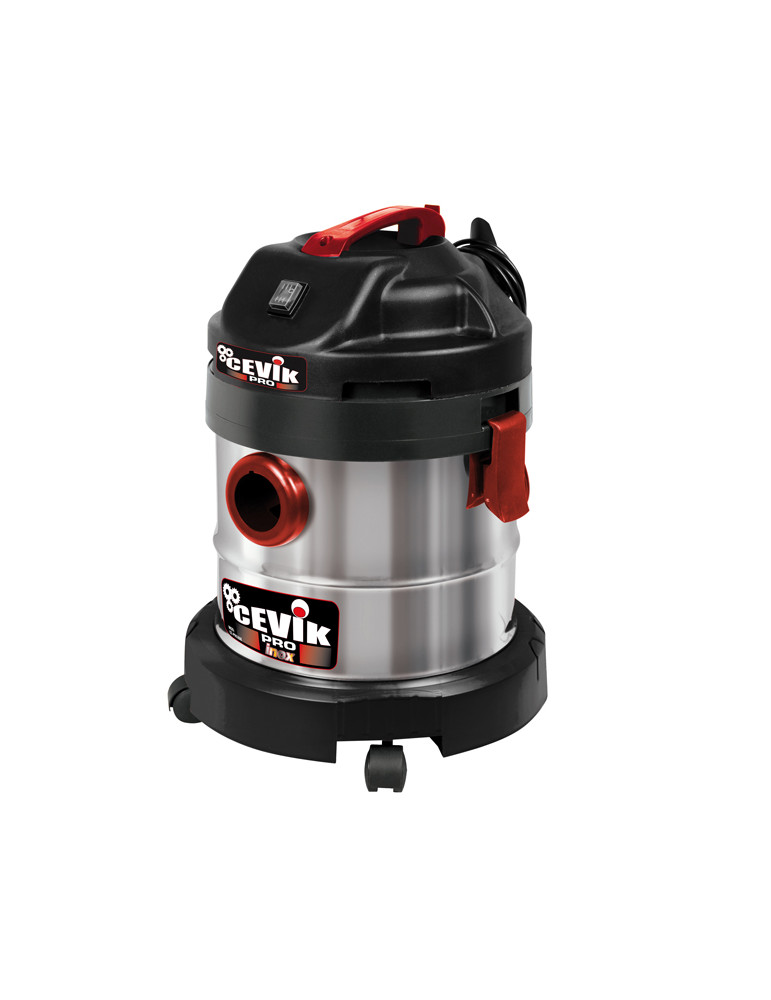 Aspirador acero inoxidable de 20 l. 1.250 W, aspira sólidos y líquidos. Incluye accesorios: 2 tubos de plástico, manguera de succión, boquillas, ruedas, filtro de líquidos, bolsa de papel y cartucho filtro sólidos.
