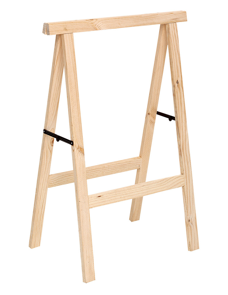 CABALLETES PINO PRO ASTIGARRAGA Resistenten y robustos. Madera certificación PEFC maciza de pino sin tratar procedente de la gestión responsable de bosques. Plegables con compás metálico. Permiten tablero adicional en parte inferior. Dos unidades soportan 800 kg. Grosor patas: 50 x