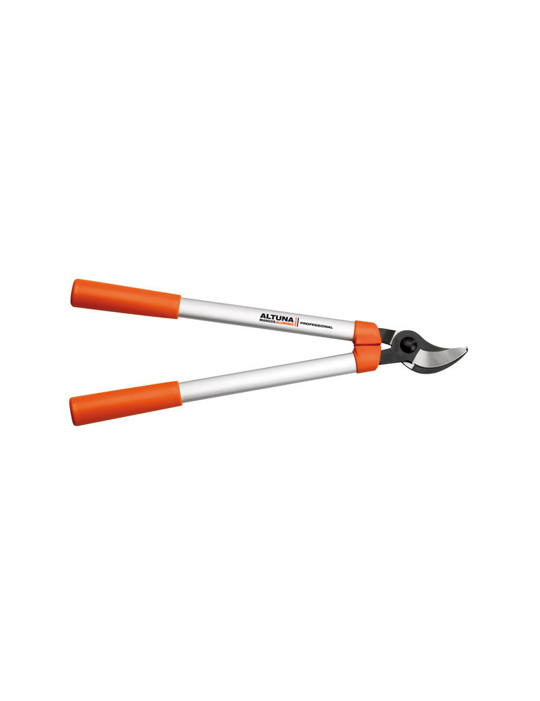 Con mangos tubulares de aluminio, con cuchilla y sufridera de acero, templadas y rectificadas. Topes de plástico. Tornillo central autoblocante. Puños de plástico ergonómicos. HOJA CAMBIABLE. Regalo serrucho plegable. 60 cm.