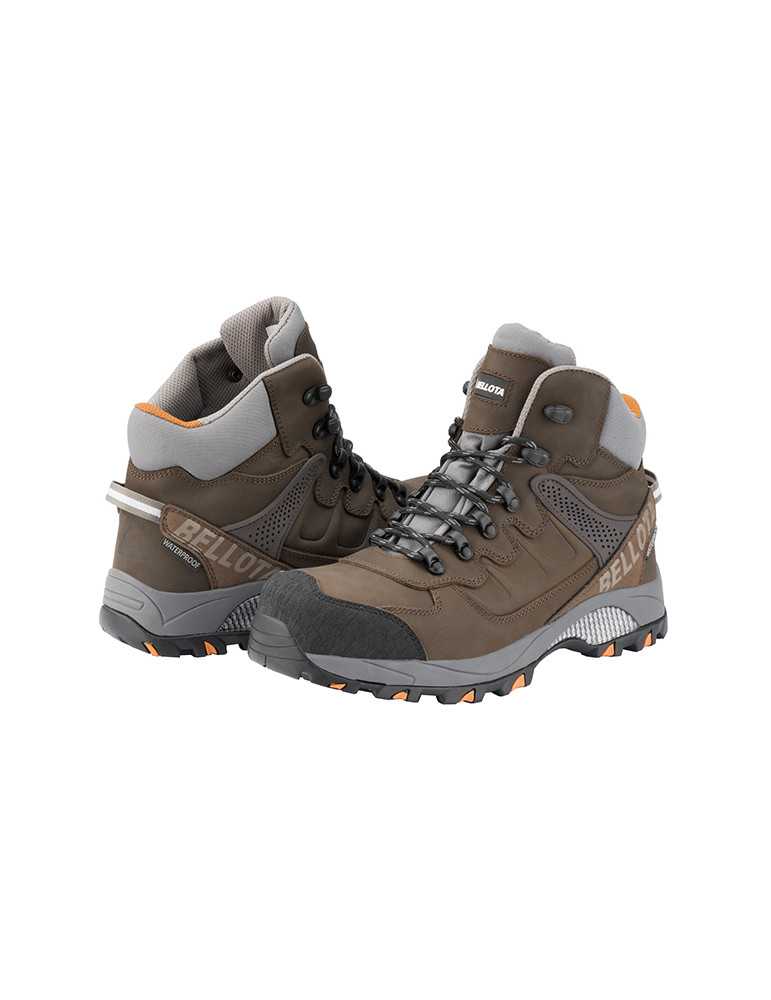 Bota de seguridad S3 en piel marrón con membrana impermeable, costuras selladas y puntera anti-abrasión.