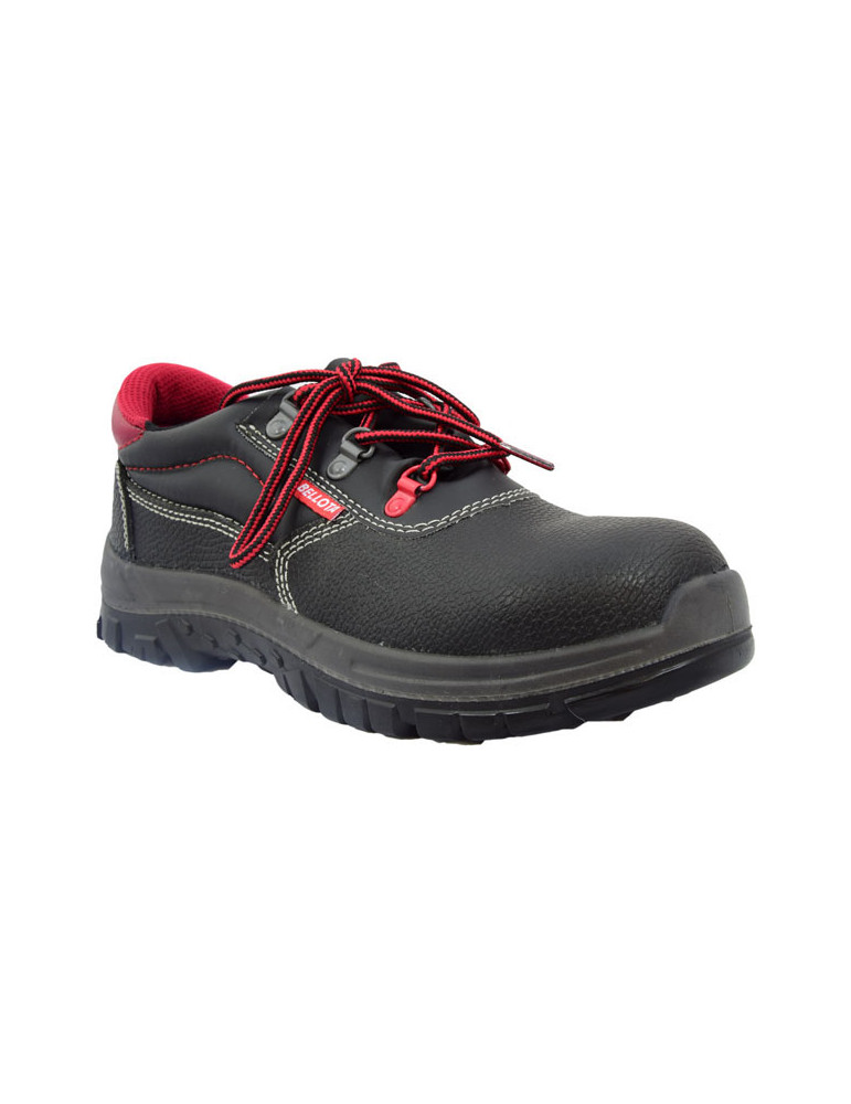 Zapato piel S3 hidrofugado con puntera y plantilla metálicas. Suela Bellota con cuña EVA integrada en el tacón. Tallas 38 a 47.