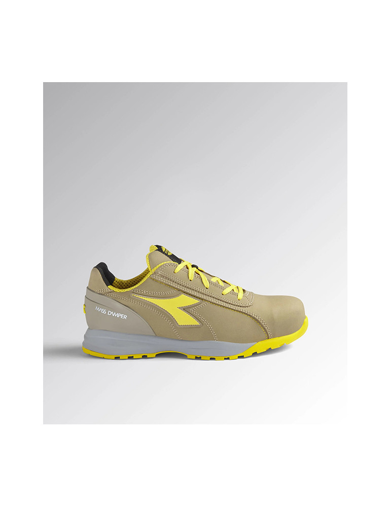 Calzado bajo de seguridad S3 de piel nobuk hidrófugo. Mass Damper Technology, puntera de aluminio 200J. Ajuste 11. Forro Air Mesh, K SOLE, película de poliuretano termoplástico. Plantilla extraíble anatómica de PU foam y carbones activos. Protección