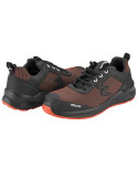 Zapato de seguridad RUN Naranja, con tejido FORTITEXTM para un calzado a prueba de abrasión e hidrofugado para repeler al agua. Incluye una plantilla con insertos de gel para la máxima absorción de los impactos.