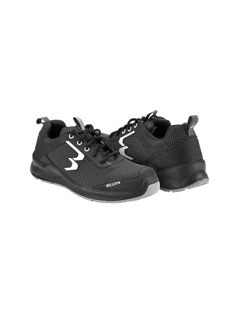 Zapato de seguridad RUN Negra, con tejido FORTITEXTM para un calzado a prueba de abrasión e hidrofugado para repeler al agua. Incluye una plantilla con insertos de gel para la máxima absorción de los impactos.