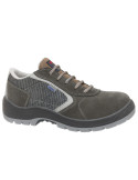 ZAPATO SERRAJE S1P CAURO PANTER. Certificado S1P según EN ISO 20345. Piel serraje afelpado 1ª calidad + tejido mesh. Muy transpirable. Puntera plástica anti-impactos 200J y plantilla anti-perforación textil. Suela con tecnología PANTER OXÍGENO transpirable e impermeable. Plantilla i