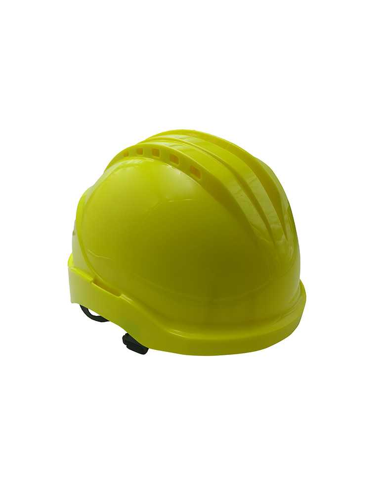 Amarillo. Especialmente diseñado para ser utilizado en trabajos en altura, emergencias y espacios confinados gracias a la ausencia de visera y a su barboquejo en Y de 4 puntos de anclaje.