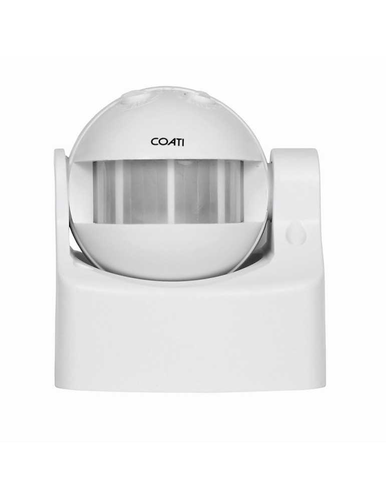 Detector de movimiento de pared con detección PIR. Tiene un ángulo de detección de 180º y un radio de 10 metros máximo y permite ajustar el enfoque para optimizar el rango de detección.