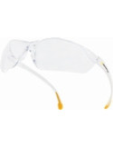 Gafas de policarbonato monobloque. Puente nasal de policarbonato integrado. Patillas de policarbonato. Conteras de PVC antideslizantes.