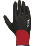 Guante de Nylon + Fibra de Lycra sin costuras con recubrimiento de Nitrilo Foam en palma. Muy ligero y flexible, no produce fatiga en la mano. Muy ergonómico, óptimo ajuste en la mano lo que proporciona mucho tacto. Tallas 7 a 10.