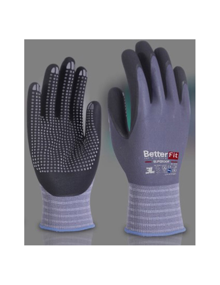 GUANTE NYLON CON NITRILO ESPECIAL ALTAS TEMPERATURAS 3L Soporte elástico de Nylon sin costuras, recubierto de nitrilo esponjoso foam antideslizante y dots de nitrilo para mayor agarre, válido para trabajos térmicos hasta 100º de temperatura. T-8 a 10.