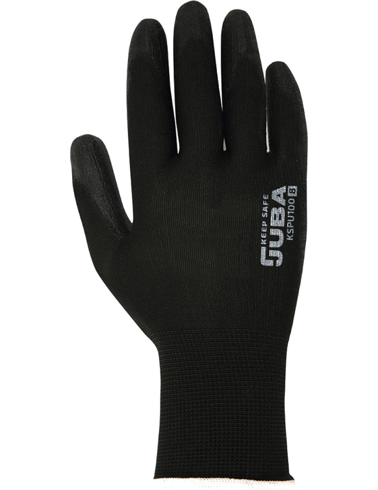 Poliéster con palma PU negro. USOS, Bricolaje. Trabajos en el campo. Almacenamiento y reposición. Manipulación, montaje y ensamblaje de piezas en entornos secos, ligeramente húmedos o engrasados. Tallas 7 a 10.
