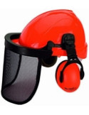 Equipos forestales para la protección contra los impactos de partículas, virutas, objetos puntiagudos. Visor malla metálica y casco Tirreno TXR.