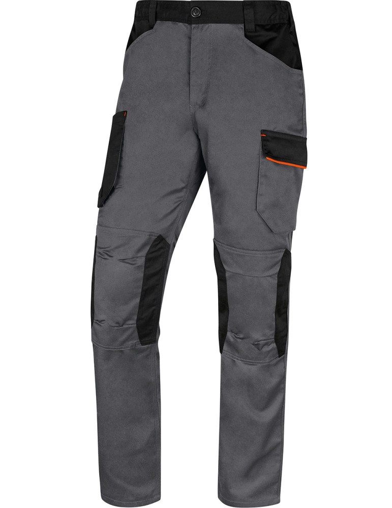Pantalón. Corte regular. Cintura elástica en los laterales. Rodillas preformadas. 7 bolsillos, incluye 1 bolsillo para metro. Tejido 65% poliéster 35% algodón 245 g/m².Colores azul marino/azul rey o gris/naranja. Tallas S - XXXL.