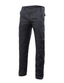 Pantalón stretch multibolsillos con goma elástica en el interior de la cinturilla de la espalda. Dos bolsillos franceses y cuatro con tapeta y velcro. Pespunte trasero de seguridad. Color negro. Tallas 40 - 54.