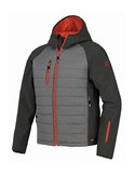 Chaqueta técnica con capucha fija, dos amplios bolsillos frontales, bolsillo porta-documento, dos bolsillos interiores y un “bolsillo napoleón”. Cordón elástico en la cintura para un ajuste óptimo. Composición: poliéster pongee recubierto e AC y Soft