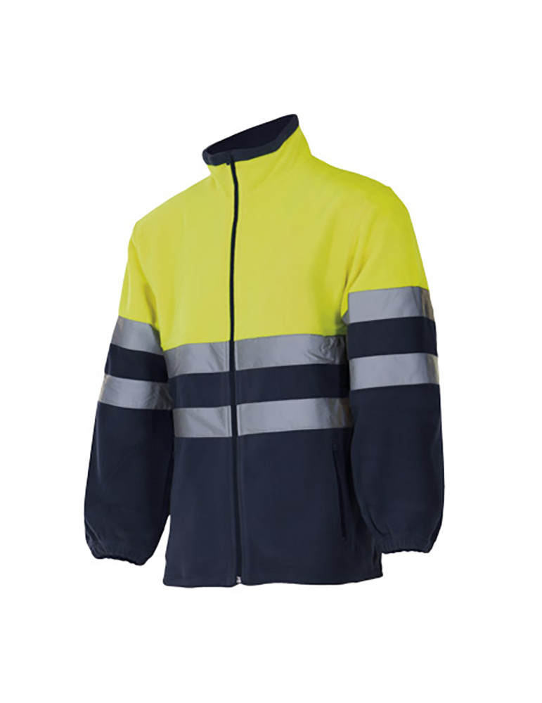 Cierre central con cremallera, cintas reflectantes en torso y mangas, puños elásticos, 2 bolsillos inferiores con cremallera. Tallas L - XXL.