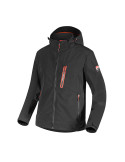 Chaqueta softshell personalizada con DUCATI CORSE. Capucha desmontable con tres ajustes, dos bolsillos laterales y un frontal con cremallera, bolsillo interno con velcro. Parte posterior más larga para mejorar el ajuste. Cordón ajustable en la cintur