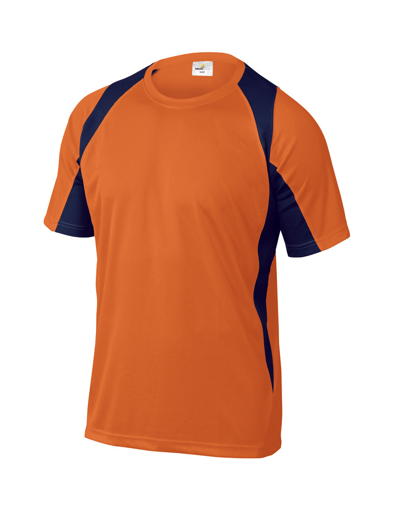 Camiseta bicolor 100 % poliéster. 160 g/m2. Cuello redondo. Tratamiento secado rápido. Tallas M, L, XL y XXL. Color Gris/Azul marino, Rojo-Gris o Naranja/Azul marino.