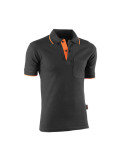 Polo pique manga corta 100% algodón. Negro con detalles en naranja. Tallas M a XXL.
