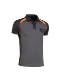 POLO TRANSPIRABLE TOP RANGE JUBA manga corta, bolsillo. Negro con detalles en naranja.