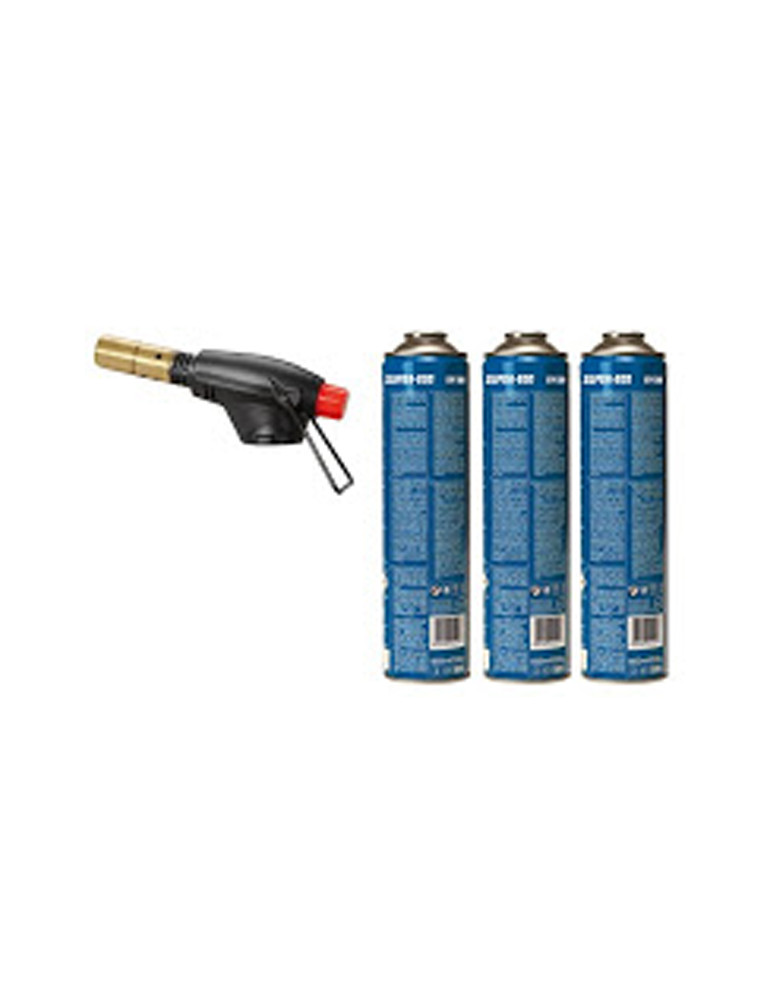 Encendido piezoeléctrico y conexión EU 7/16. Incluye 3 botellas de gas BTP300.