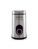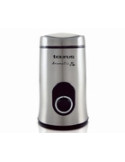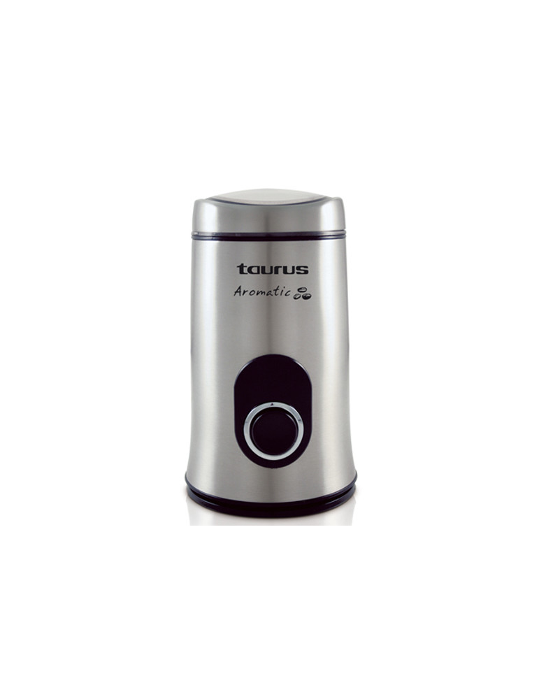 En acero inoxidable, depósito de café de 50 g, pulsador puesta en marcha, alojamiento para cable.