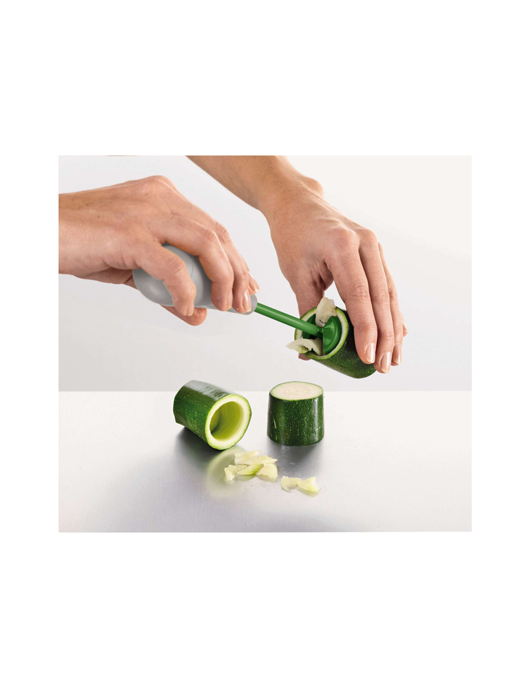 Podrá quitar de forma eficaz y fácil el corazón tanto de hortalizas como de frutas. Elabora deliciosos snacks y comidas con rellenos tanto salados como dulces. Contiene cuatro cabezales de perforado de distinto tamaño. Fácil de guardar. Incluye libro