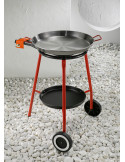 Paellero 400 + Paella pulida 46 + Soporte con ruedas y bandeja.