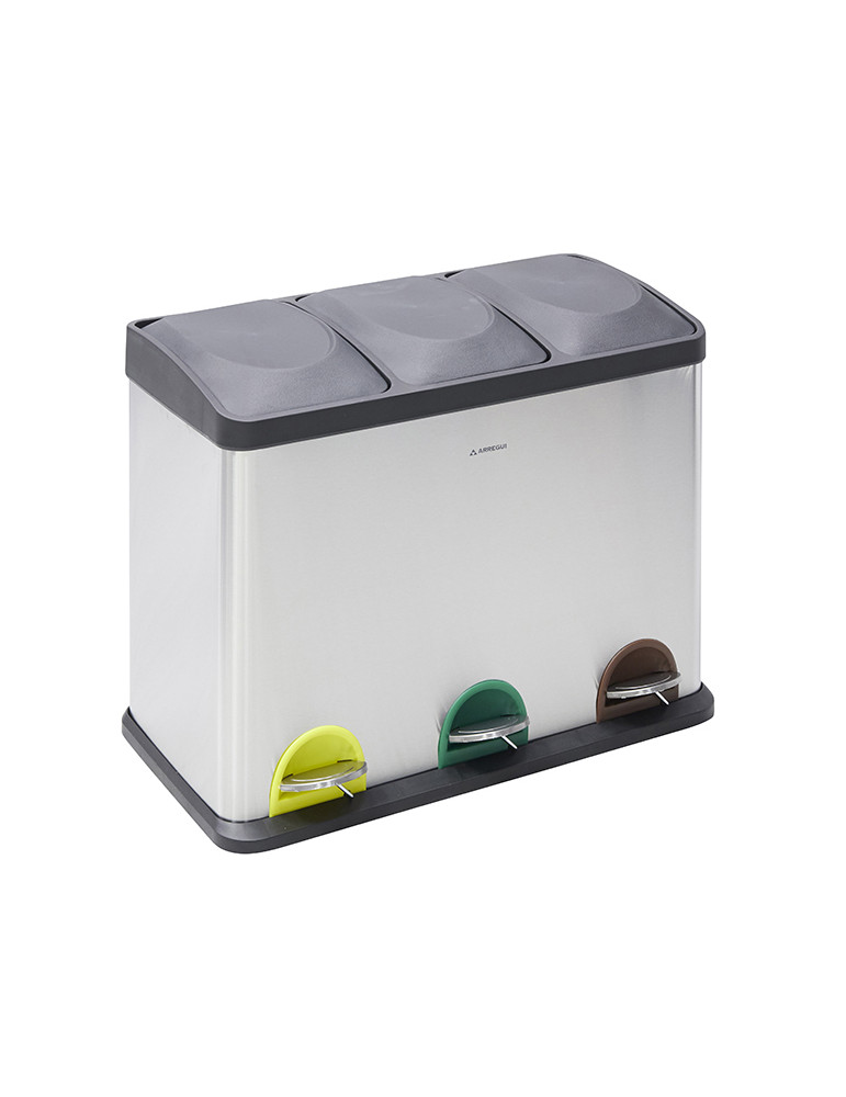 Destinados a la recogida selectiva de residuos domésticos. Sistema de apertura mediante pedal. El contenedor lleva alojado en su interior cubetas de plástico removibles con asas que facilitan su extracción y limpieza. Cada cubeta tiene una capacidad