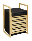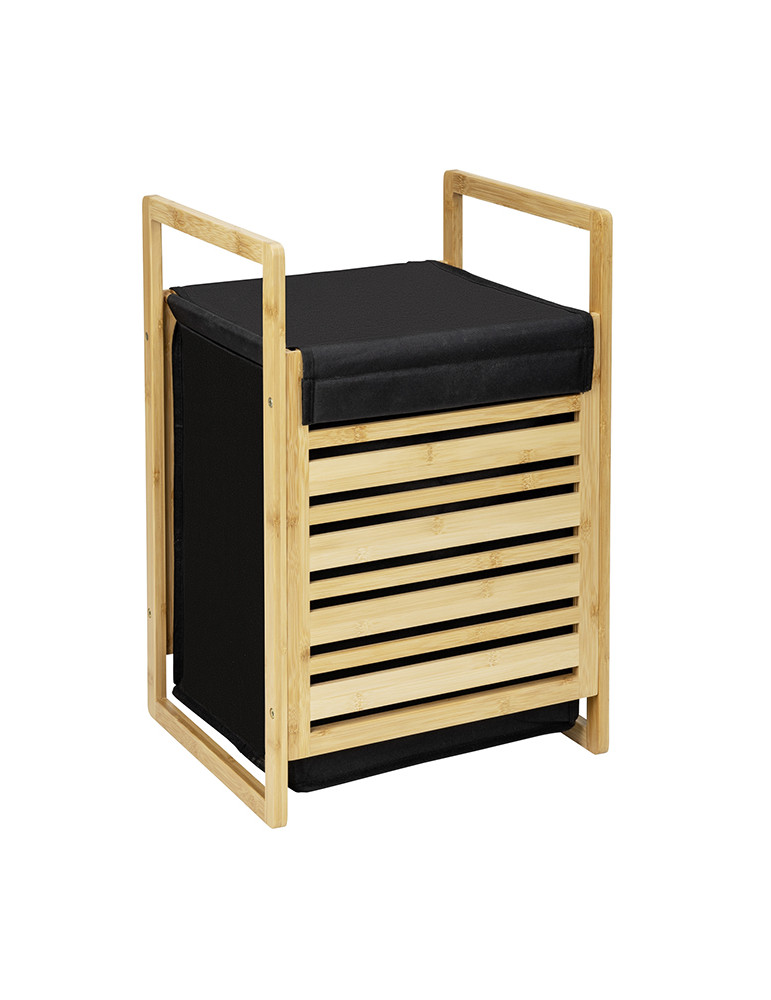 Pongotodo de bambú de alta calidad. Con bolsa de ropa sucia extraíble y práctica tapa. Textiles fabricados con poliéster 100 % reciclado (RPET). Con revestimiento interior resistente a la humedad. Bambú de cultivo certificado FSC®. Embalaje sin plást