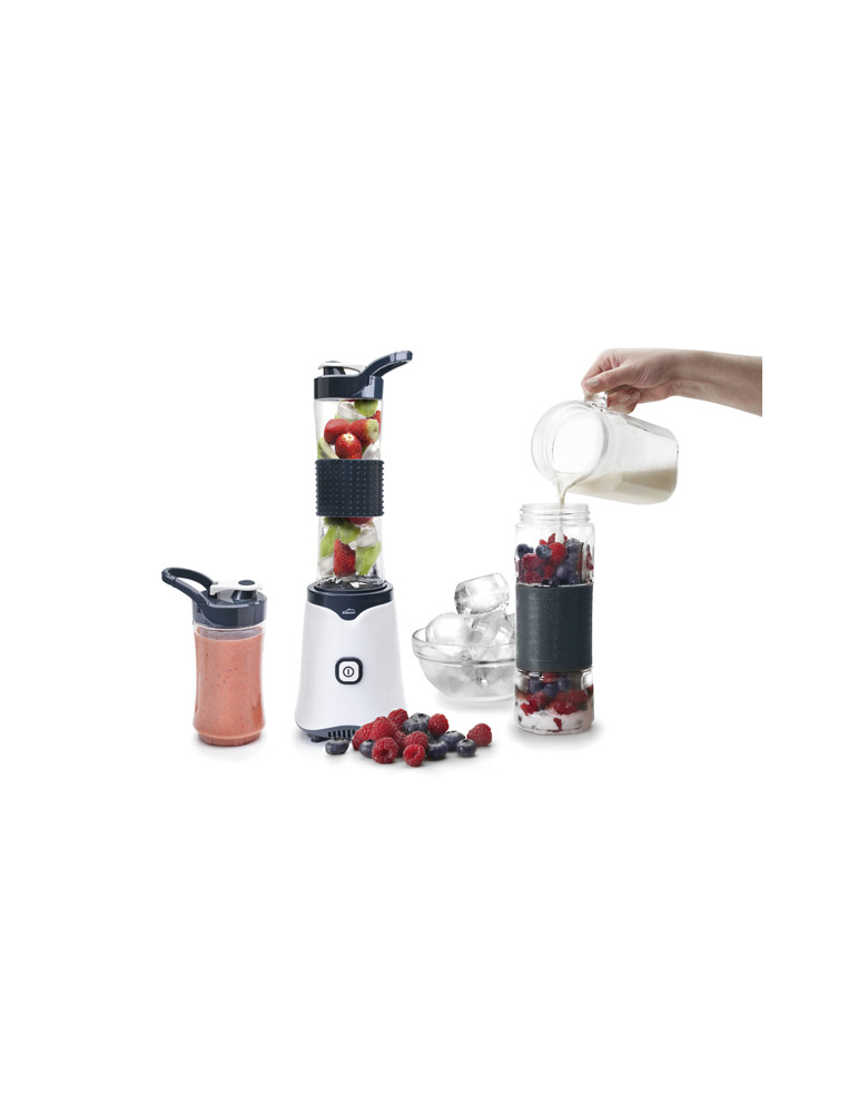 BATIDORA PERSONAL MIX & GO Perfecta para todo tipo de zumos, cremas y batidos. Jarra vaso portátil con cierre hermético y boquilla. Dos botellas de 300ml y 600ml.