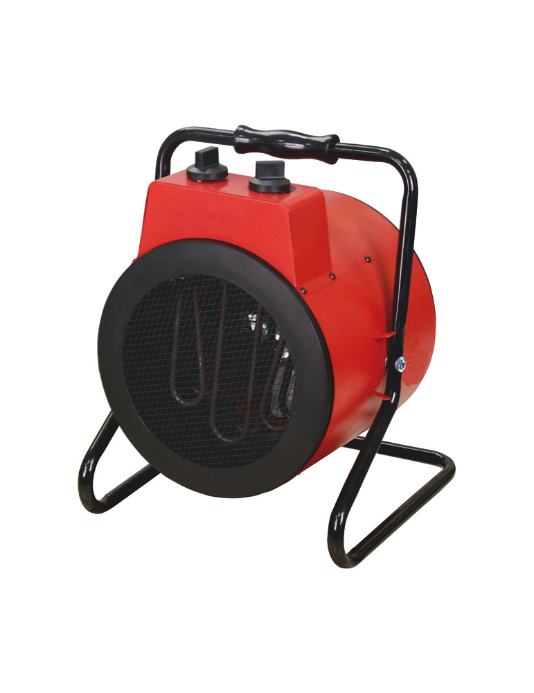 Termostato de control ajustable. Se desactiva automáticamente en caso de caída. Con carcasa resistente a las altas temperaturas, tubos de aluminio. Asa para transporte. 3.000 W.