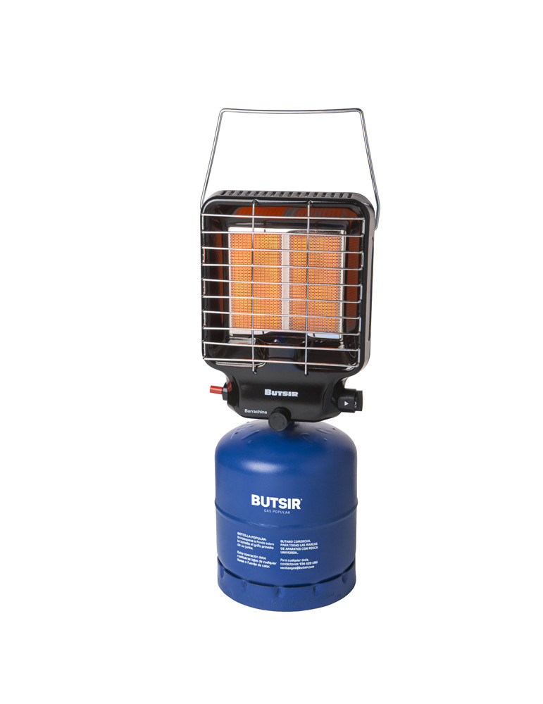 1.500 W una placa / 3.000 W dos placas. 15 x 25 x 35 cm. Encendido piezoeléctrico. Analizador de atmósfera y termopar. Homologada interior y exterior. Uso exclusivo bombonas Butsir azul.