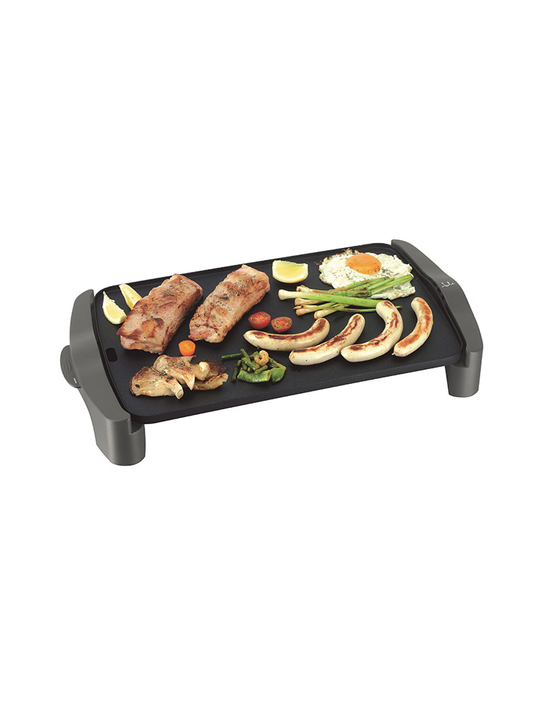 Recubrimiento antiadherente ecológico libre de PFOA. Resistencia en “M”. Cocina por igual en toda la superficie. Sistema “Super Diet”. Medidas 460 x 280 mm. Termostato regulable de temperatura extraíble. Bandeja salsera. Asas de toque frío. Apta para