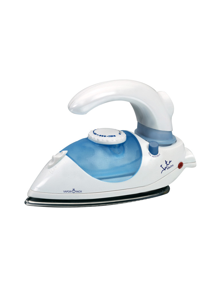 PLANCHA DE VAPOR DE VIAJE PL357N JATA Potencia 800 W. Suela de acero inoxidable. Mango abatible. Termostato regulable de temperatura. Bolsa textil de viaje.