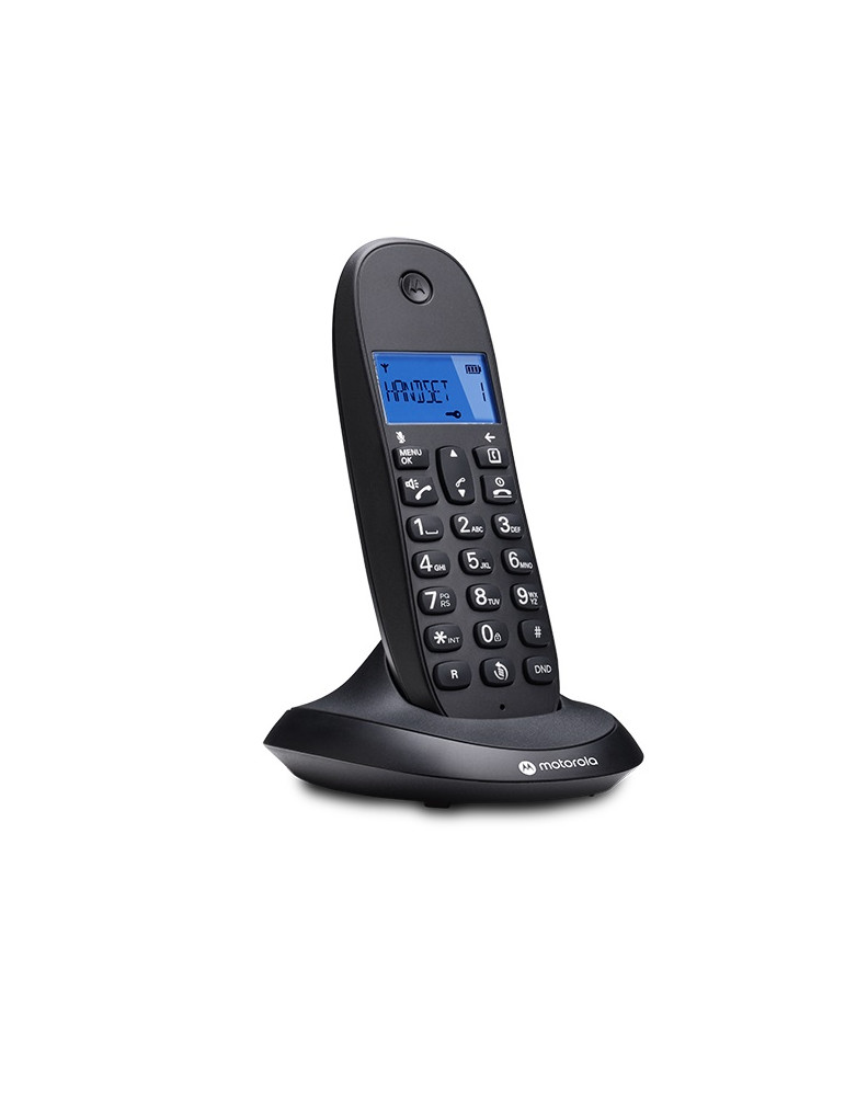 Telefono inalambrico Motorola C1001 CB+ NEGRO Teléfono inalambrico Digital con bloquéo de llamada entrante y función “No Molestar” de un toque. Dispone de manos libres, transferencia de llamada, agenda de 50 nombres y números y pantalla retroiluminada brillante. Fuciona con baterías AAA recarga