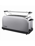 1.600 W. Regulador ajustable del nivel de tueste. 2 ranuras alargadas para cuatro rebanadas. Funciones: Descongelado, Cancelación y Calientapanecillos. Sistema de extraelevación. Bandeja recogemigas extraíble.