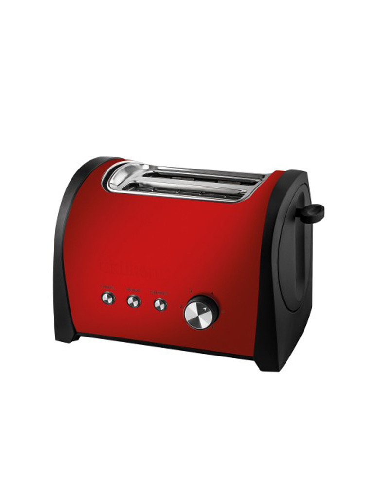 800W de potencia. Diseño en acero inoxidable con acabado en rojo. Resistencias de gran superficie para un tostado uniforme. Selector giratorio con 6 niveles de tostado. Botones con borde luminoso; función descongelación, recalentar y parada. 2 ranur
