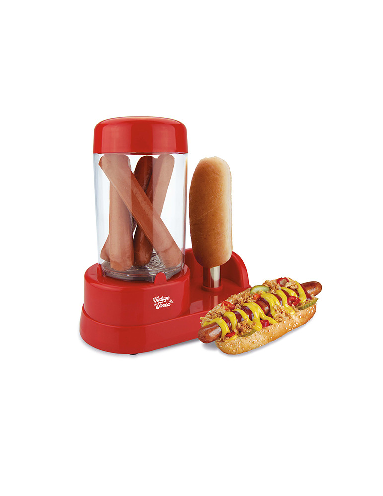 HOT DOG ROJO - Capacidad: 6 salchichas - Compartimento para salchichas - Barra de acero inoxidable para calentar el pan - Depósito de agua - Botón on/off - Acero inoxidable y PP - 230V ~ 50Hz - Medidas: 28*25 cm - Peso: 728 gr - 350W 350W