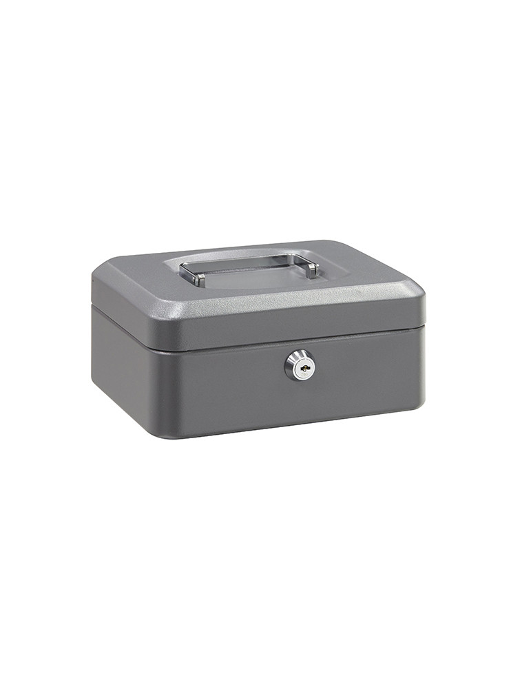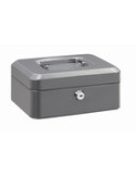 CAJA CAUDALES Acero y color gris. Apertura con llaves de serreta (incluye 2 llaves). Incluye bandeja multifunción y asa para su transporte. 30x24x9cm