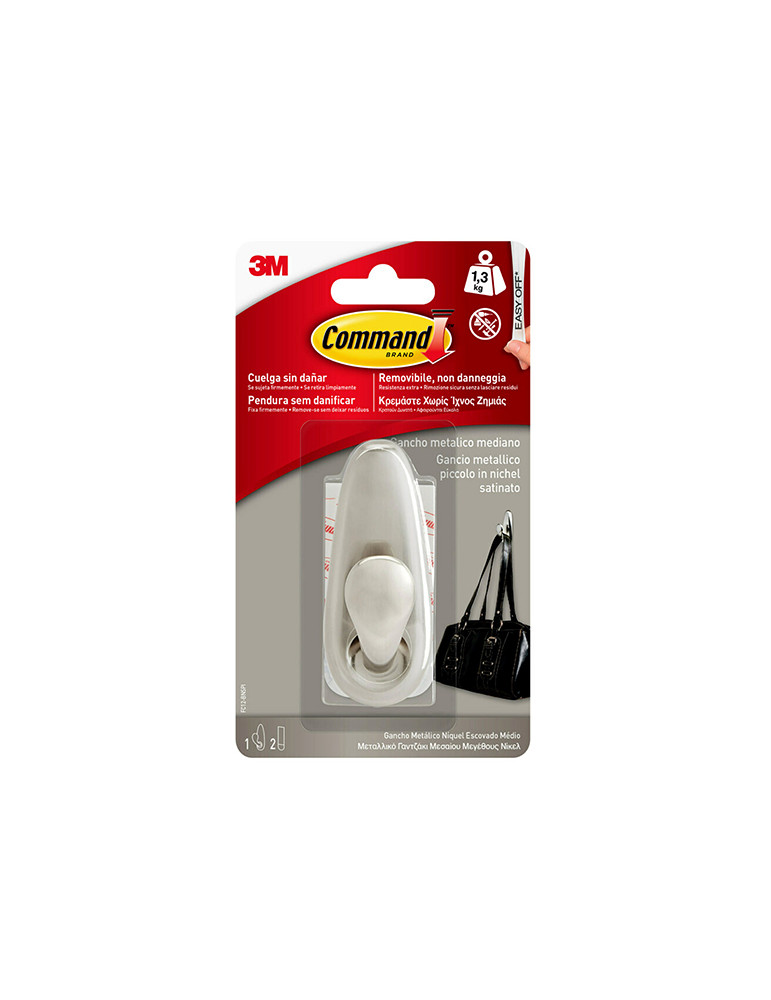 Para colgar objetos de casa de uso cotidiano con seguridad y sin ocasionar daños. Se sujeta firmemente y se retira de forma limpia gracias a la tecnología de estirar y soltar de 3M. Color níquel pulido Forever. 83 x 32 mm.
