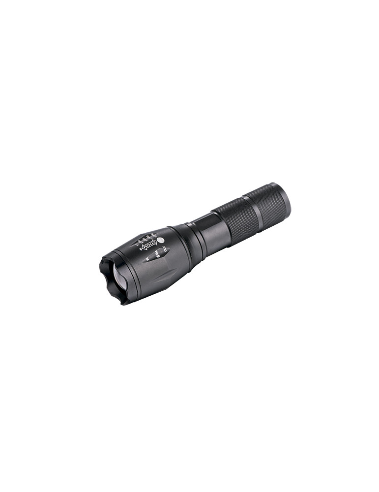 10W. 1500lm. Alcance 500m. Autonomía 5h. Incluye pilas. Interruptor con 5 opciones: alta, media y baja intensidad, avistamiento y S.O.S. Zoom regulable hasta x 2000. Aluminio. 40X135-155mm