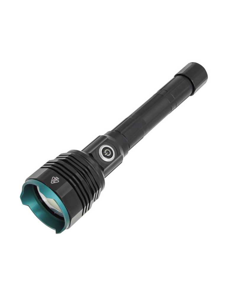 Linterna led tubular profesional. Cuerpo de aluminio de color negro. Batería recargable de Litio de 2600 mAh. Modelo con Función POWER BANK. Carga mediante toma USB tipo C.